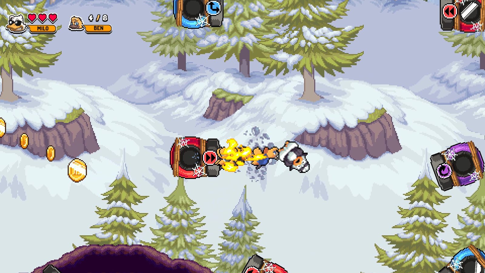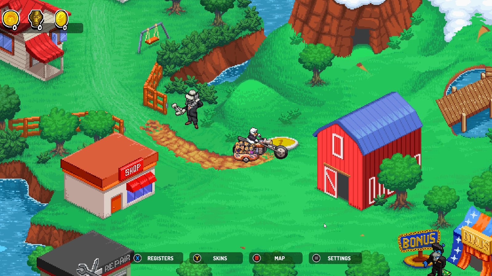 O jogo traz uma arte em estilo cartoon, totalmente desenhado a mão em pixel arte, remetendo aos desenhos e jogos populares da época ao qual presta homenagem.